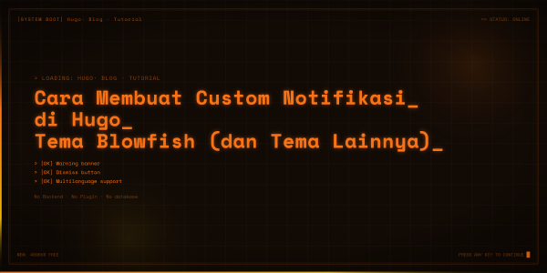 Cara Membuat Custom Notifikasi di Hugo Tema Blowfish (dan Tema Lainnya) 11 Maret 2026·1348 kata·7 menit Hugo Tutorial