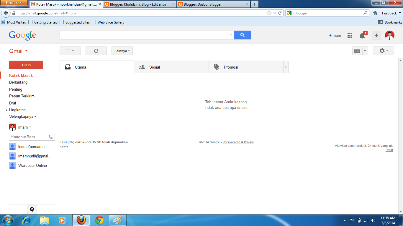 | Gmail jika sudah mendaftar (Tampilan E-Mail) |