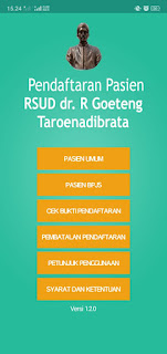 [Update Mei 2022(Klik Di sini)]Guna mewujudkan rumah sakit pintar (smart hospital), Rumah Sakit Umum Daerah (RSUD) Purbalingga Goeteng Taroenadibrata telah meluncurkan beberapa fasilitas dan aplikasi, seerti fasilitas pembayaran non tunai dan pendaftaran online via aplikasi. Namun, ternyata masih banyak yang tidak paham mengenai pendaftaran online di RSUD Purbalingga. Berikut ini cara mendaftar online di RSUD Purbalingga menurut pengalaman pribadi.